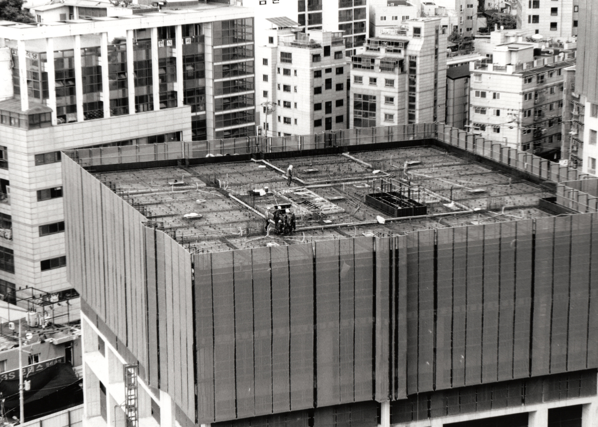 나는 하얀 벽의 틈새로 숨어들어, 그곳에서 진행되는 도시의 미세한 움직임을 관찰했다. 작업하는 사람들, 철근의 형태, 크레인의 움직임. 그 풍경들은 하나하나 고요히 존재하고 있으나, 일상의 삶에서는 외면되는 장면들이다.