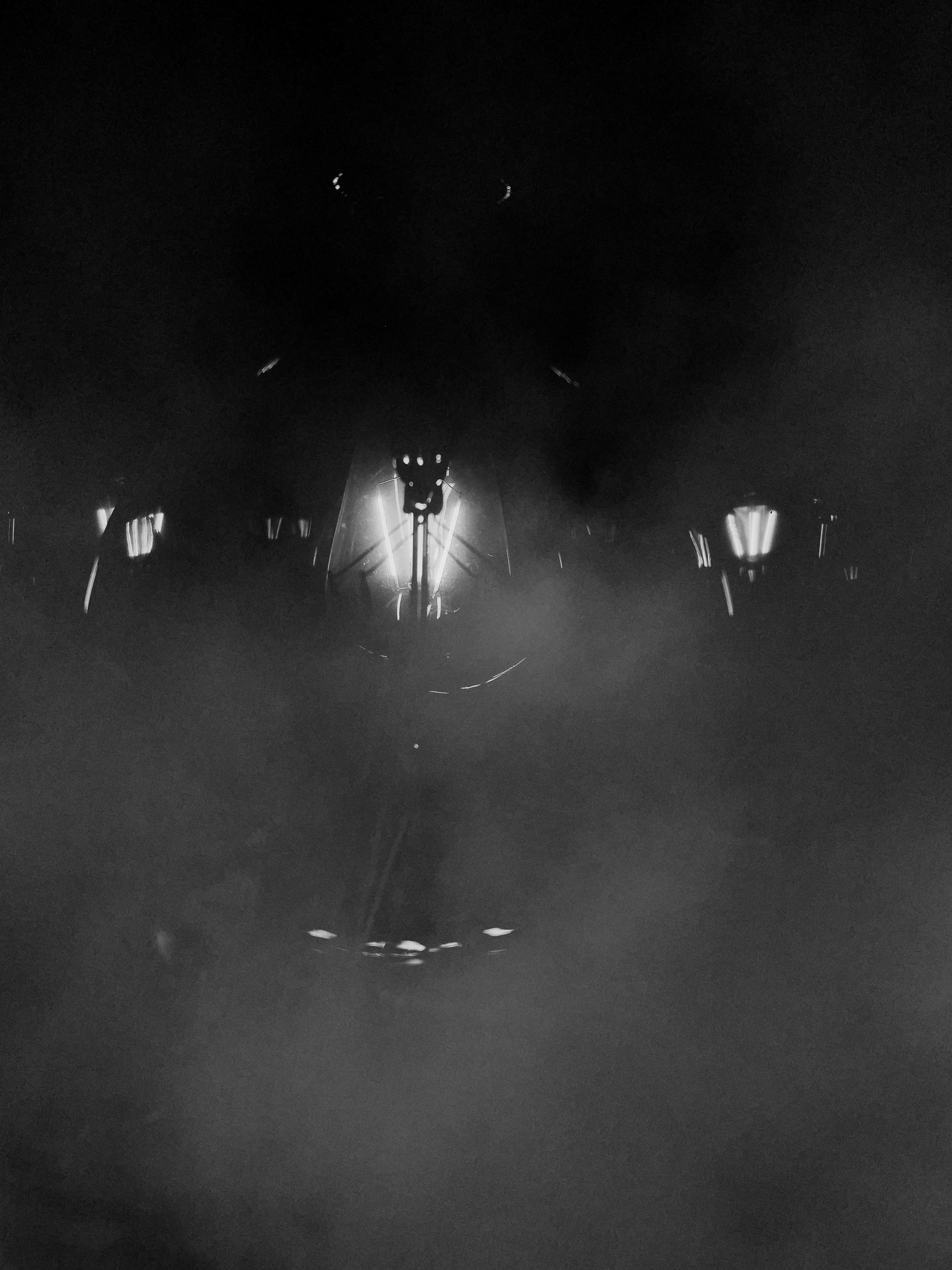 나는 프레임 안에 의도적으로 연기와 안개를 개입시켰다. 이 뿌연 입자들은 피사체의 윤곽을 지우고, 원근감을 교란하며, 명확해야 할 공간을 미지의 영역으로 바꿔버린다. 텅 빈 복도와 젖은 도로 위를 부유하는 이 모호한 기체들은 단순한 대기 현상이 아니다. 그것은 당시 내가 세상과 맺고 있던 불투명한 관계이자, 현실을 직시하지 못하게 만들었던 불안의 형태이다.